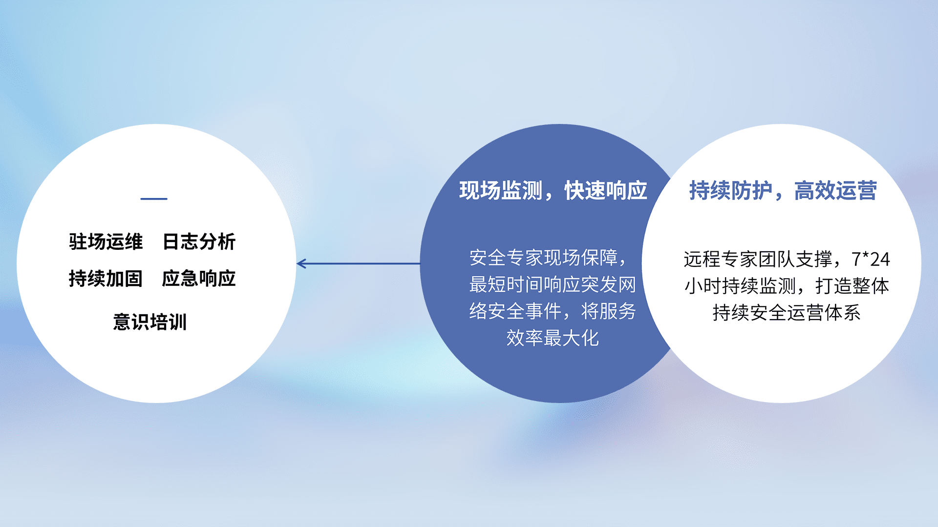 针对客户行业特性,,,,提供专属的一站式安全管理服务,,,帮助客户全面感知网络空间威胁,,,,通过安全专家的线上、、、线下防护支持,,,实现风险闭环,,,,将安全保障常态化,,,,为客户打造常态化安全运维运营服务。。